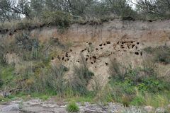 Höhlen von Uferschwalben in der Abbruchkante am Boiensdorfer Werder